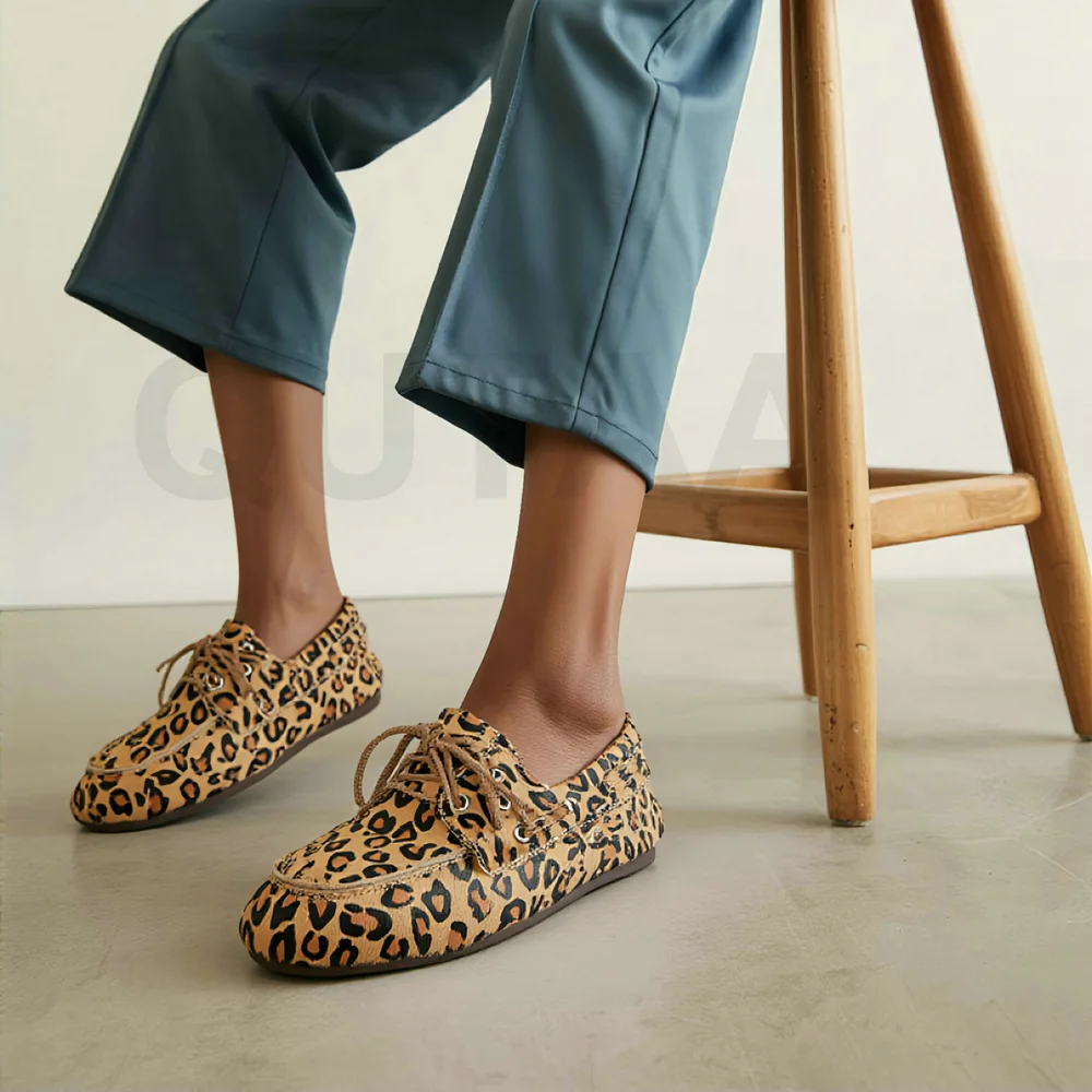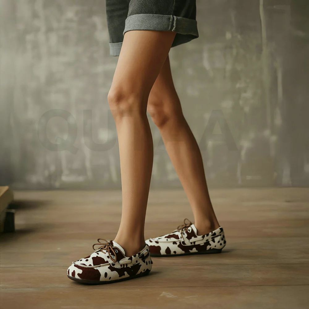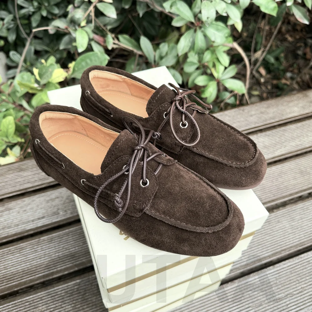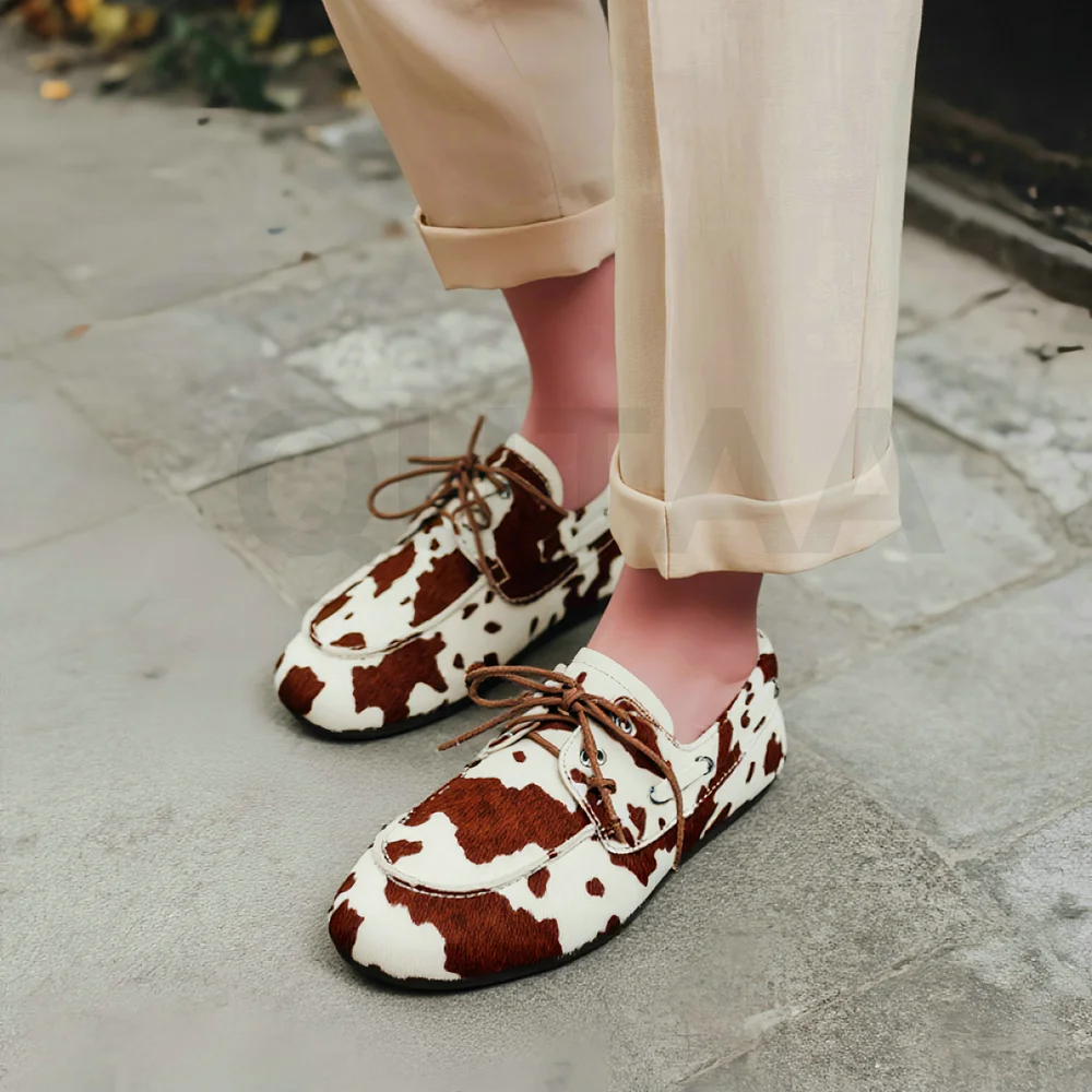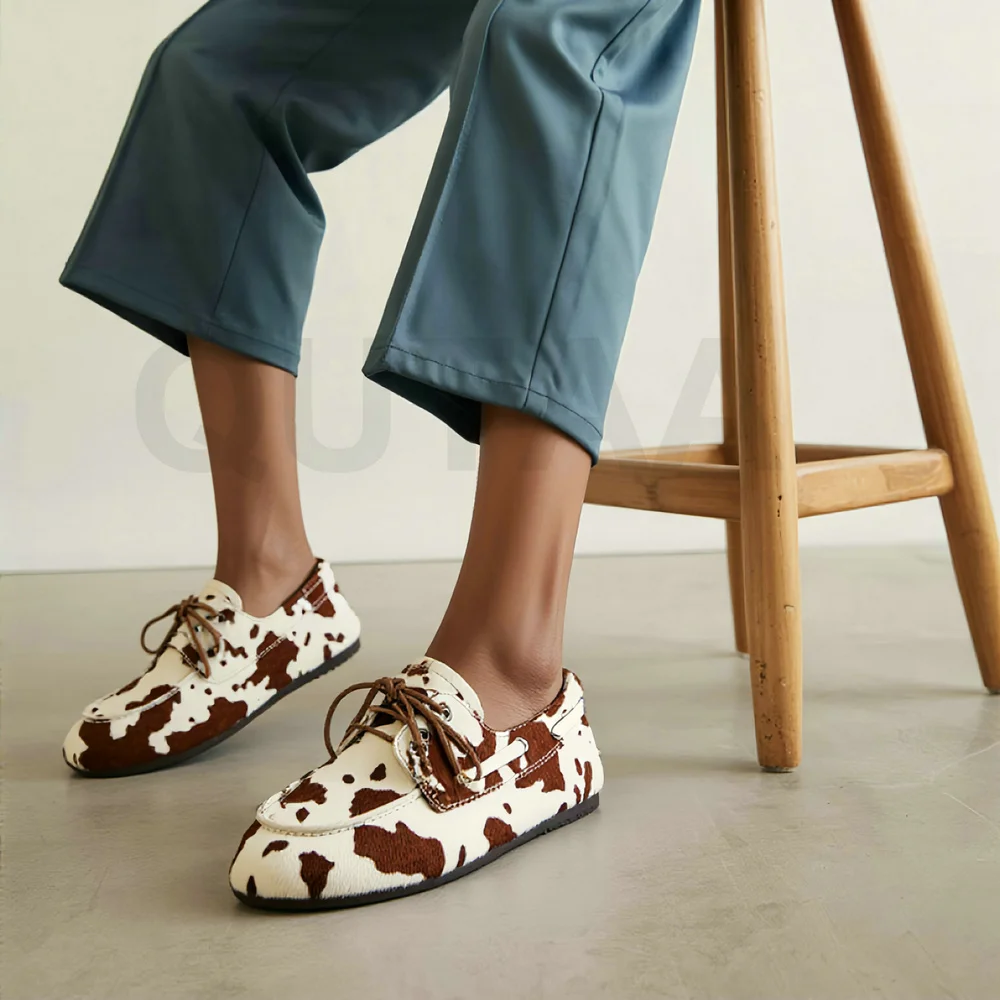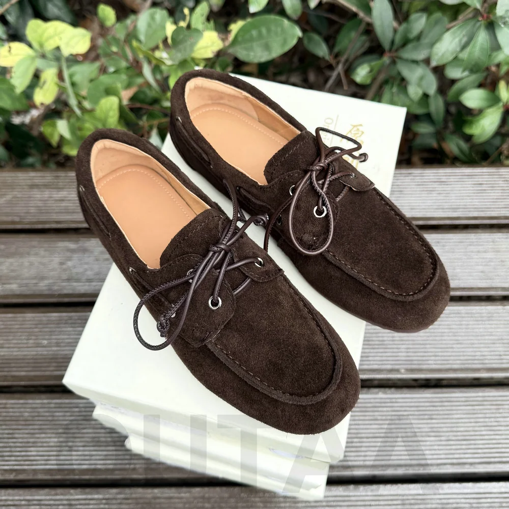 QUTAA News Fashion Cow Suede Women Flats Shoes Woman Spring Lace-up Leather Casual Loafers Shoes Round Toe Ladies Dress 35-43