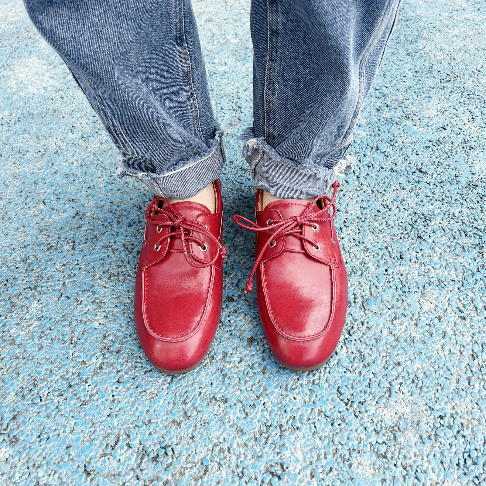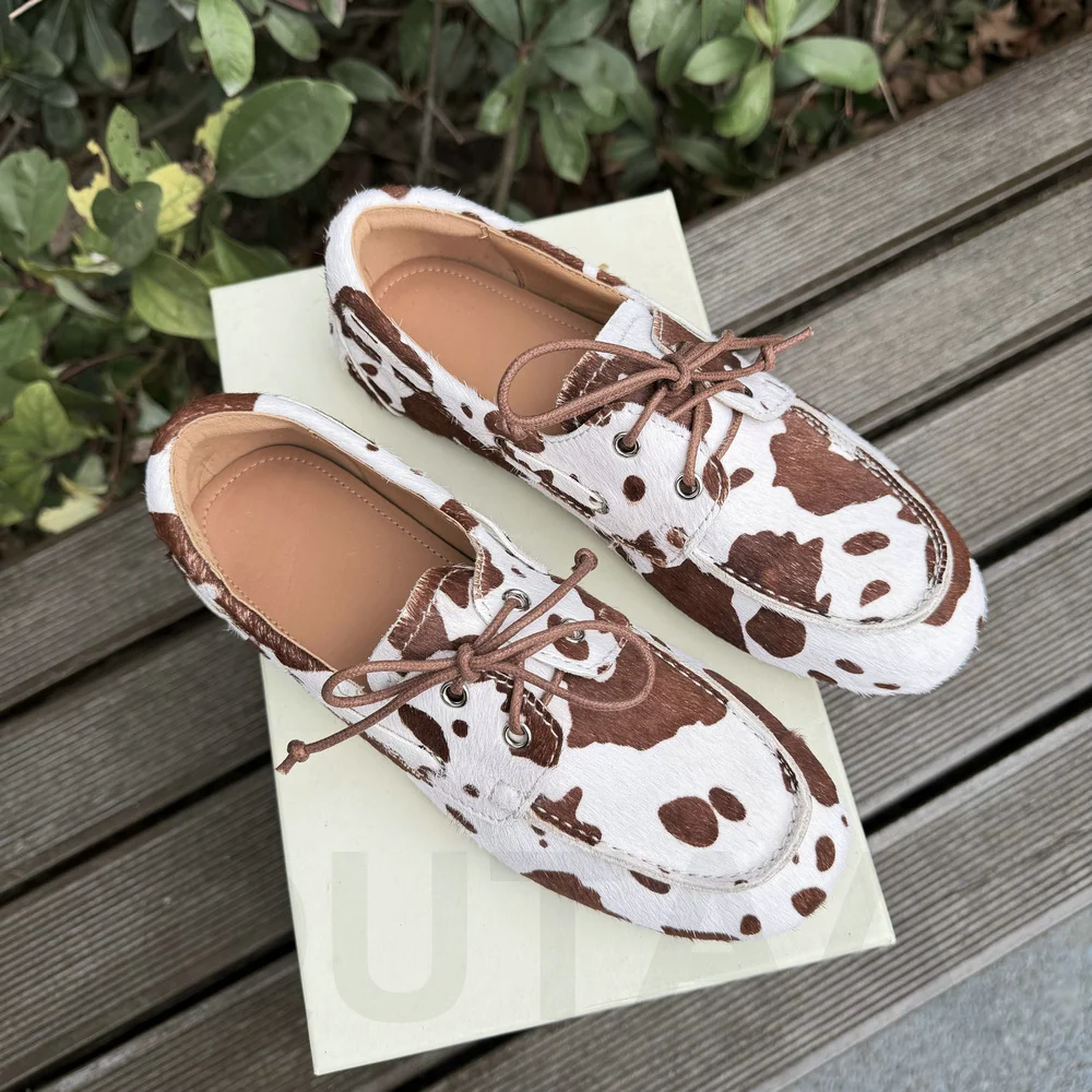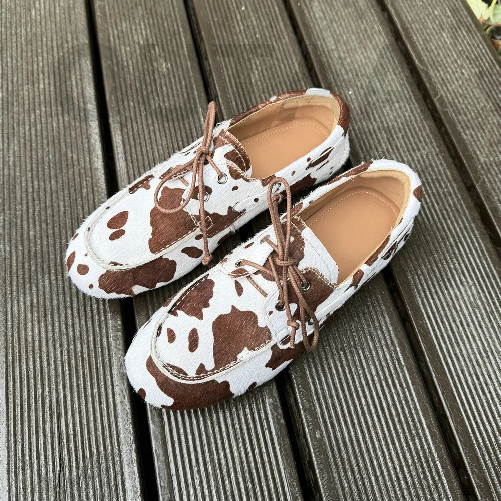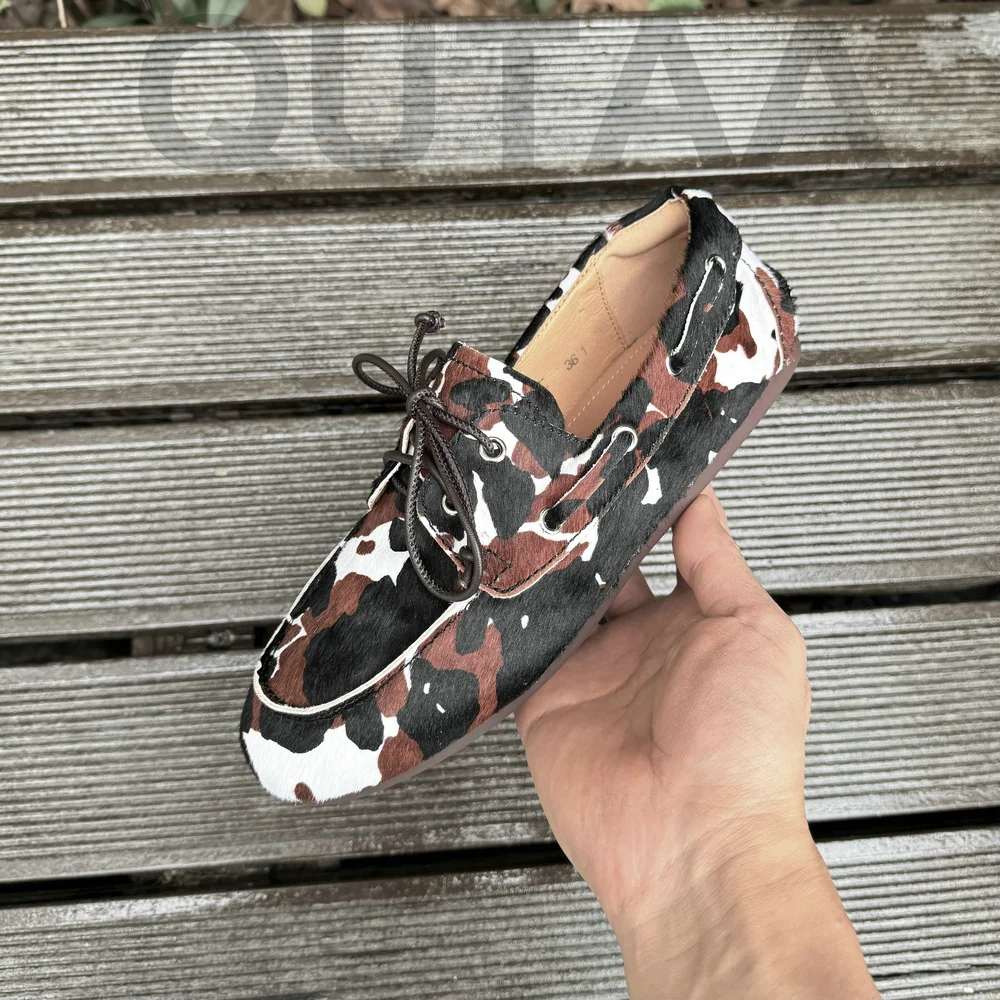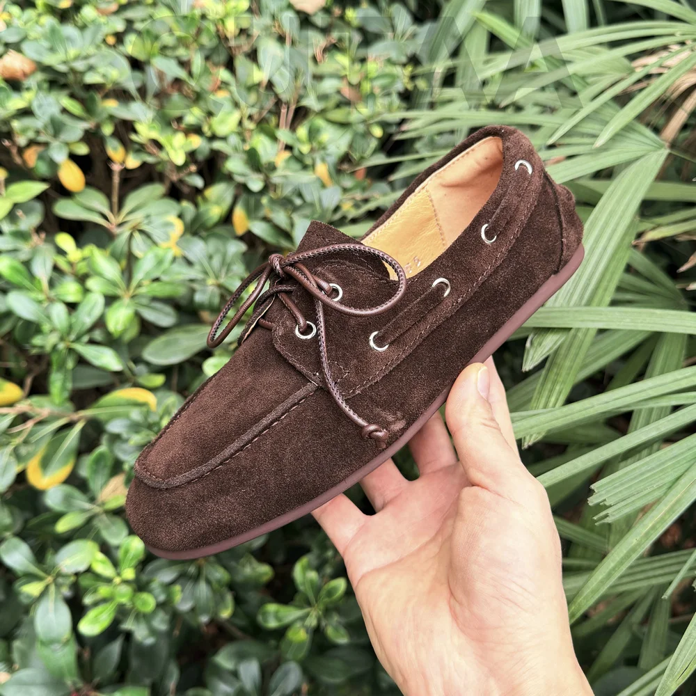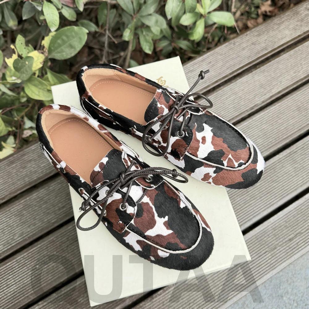 QUTAA News Fashion Cow Suede Women Flats Shoes Woman Spring Lace-up Leather Casual Loafers Shoes Round Toe Ladies Dress 35-43